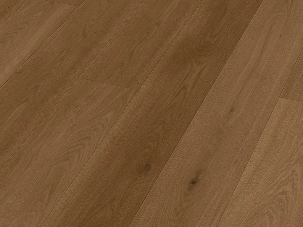 Die markante Eichenholzmaserung des Dekors vermittelt Behaglichkeit und natürliche Lebendigkeit. Landhausdielen wirken mit ihrer 1-Stab-Optik elegant, rustikal und voller Charakter. Die 4-seitig umlaufende V-Fuge der Diele betont den rustikalen Charakter. Dank modernster Herstellungsverfahren werden Musterwiederholungen in der Oberflächenstruktur weitestgehend vermieden, sodass ein natürlich authentischer Holzlook entsteht.