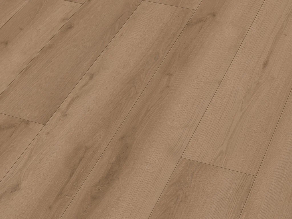 Die markante Eichenholzmaserung des Dekors vermittelt Behaglichkeit und natürliche Lebendigkeit. Der Landhausdielenlook bringt mit seinem natürlich wirkenden 1-Stab-Design südliches Flair in dein Zuhause und schafft eine Atmosphäre voller Ruhe und Gemütlichkeit. Die 4-seitig umlaufende V-Fuge betont den Dielencharakter. Dank der strukturierten Oberfläche entsteht optisch und fühlbar der Eindruck eines echten Holzbodens.