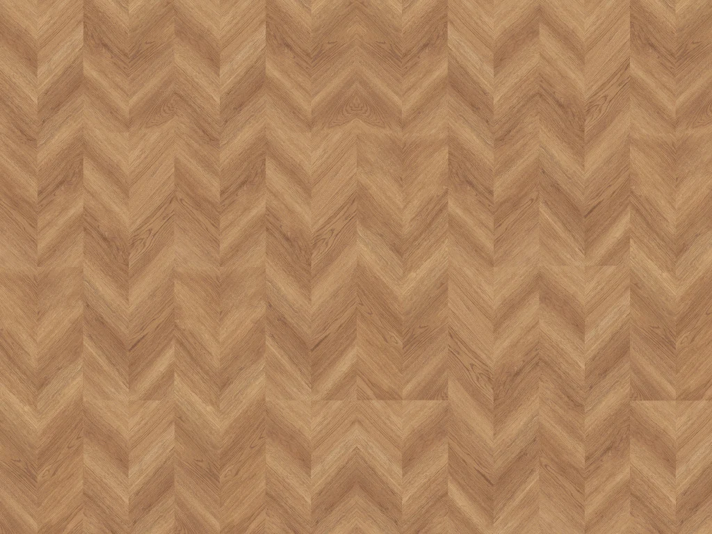 Die markante Eichenholzmaserung des Dekors vermittelt Behaglichkeit und natürliche Lebendigkeit. Das Fischgrätdesign verleiht dank seines unverwechselbaren Verlegemusters jedem Raum eine elegante Atmosphäre. Die fugenlose, flächige Optik dieses Bodens schafft eine offene Atmosphäre und das perfekte Ambiente für elegante Möbel.