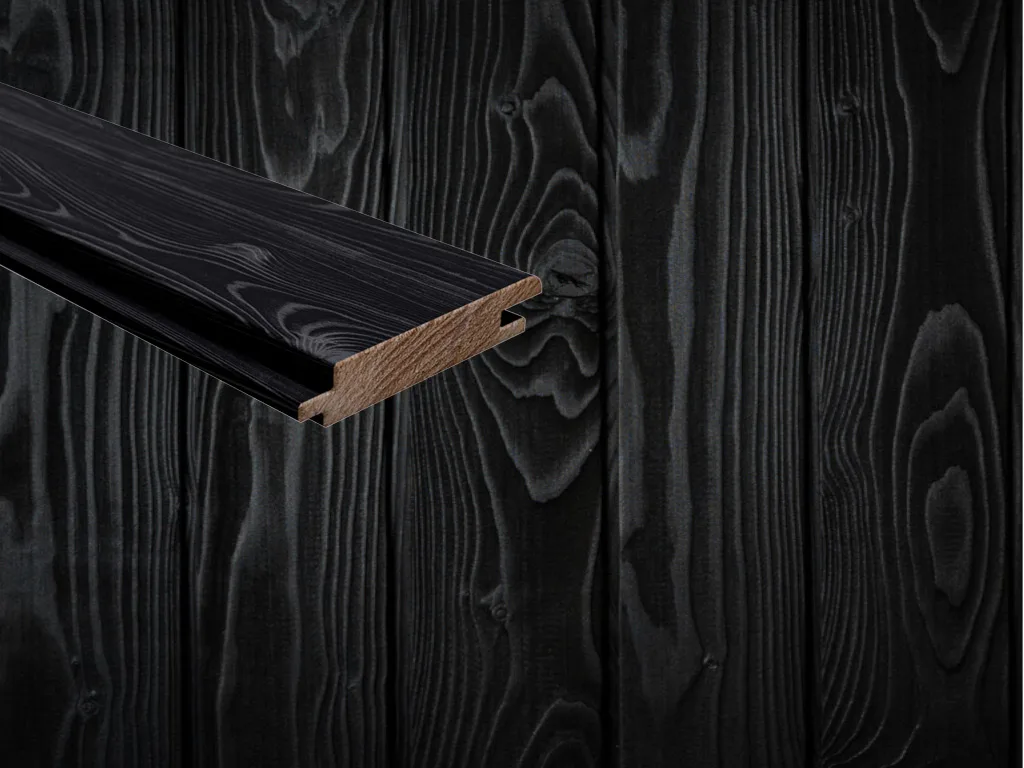 Bitte beachten: Da die Fassadenhölzer mit Feuer behandelt wurden, können sich Rußrückstände auf der Oberfläche befinden, die bei Berührung auf Kleidung und Hände abfärben können.