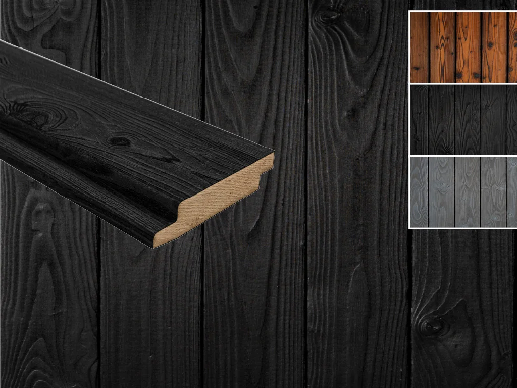 Bitte beachten: Da die Fassadenhölzer mit Feuer behandelt wurden, können sich Rußrückstände auf der Oberfläche befinden, die bei Berührung auf Kleidung und Hände abfärben können.