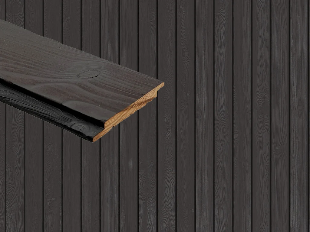 Bitte beachten: Da die Fassadenhölzer mit Feuer behandelt wurden, können sich Rußrückstände auf der Oberfläche befinden, die bei Berührung auf Kleidung und Hände abfärben können.