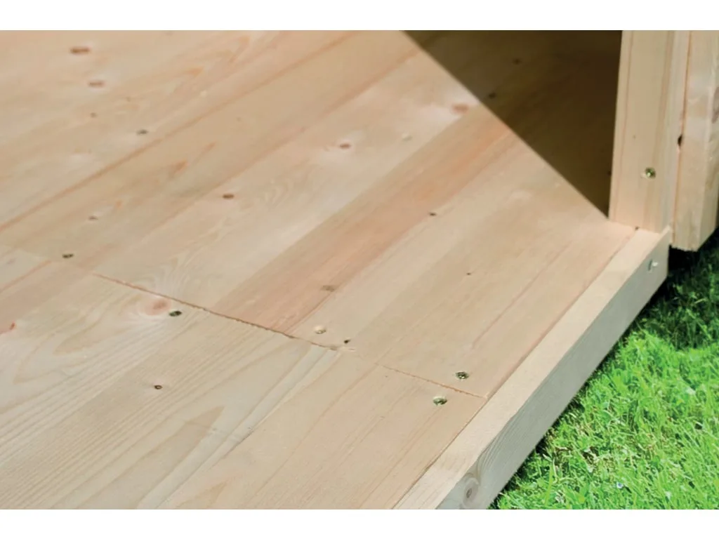 Inklusive kesseldruckimprägnierter Unterkonstruktionshölzer, bietet der Boden eine stabile Basis und erhöht die Langlebigkeit des Gartenhauses. Die passgenaue Verarbeitung der Bretter erleichtert die Montage und sorgt für einen sicheren, gleichmäßigen Stand.