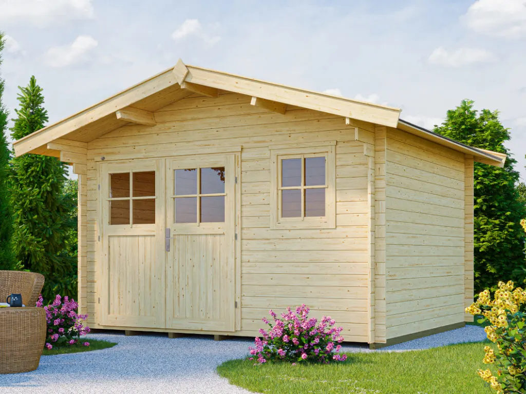 Als der Klassiker unter den Gartenhäusern verfügt ein Blockbohlenhaus über eine sehr robuste Bauweise, gepaart mit einer besonderen, natürlichen Ästhetik. Dabei orientiert sich die Bohlenbauweise an der traditionellen Blockhütte. Die Wände setzen sich aus vorgefertigten Holzbohlen zusammen, die dank einer Nut- und Feder-Verbindung ohne größere Anstrengungen aufeinander gesteckt werden können. Damit ist ein einfacher und schneller Auf- und Abbau garantiert. An der Kopfseite des Gartenhauses sorgt die charakteristische Verkämmung (spezielle Einkerbungen im Holz) nicht nur für eine schöne Optik, sondern hält das ganze Konstrukt auch zusammen und macht es absolut wind- und wetterfest.