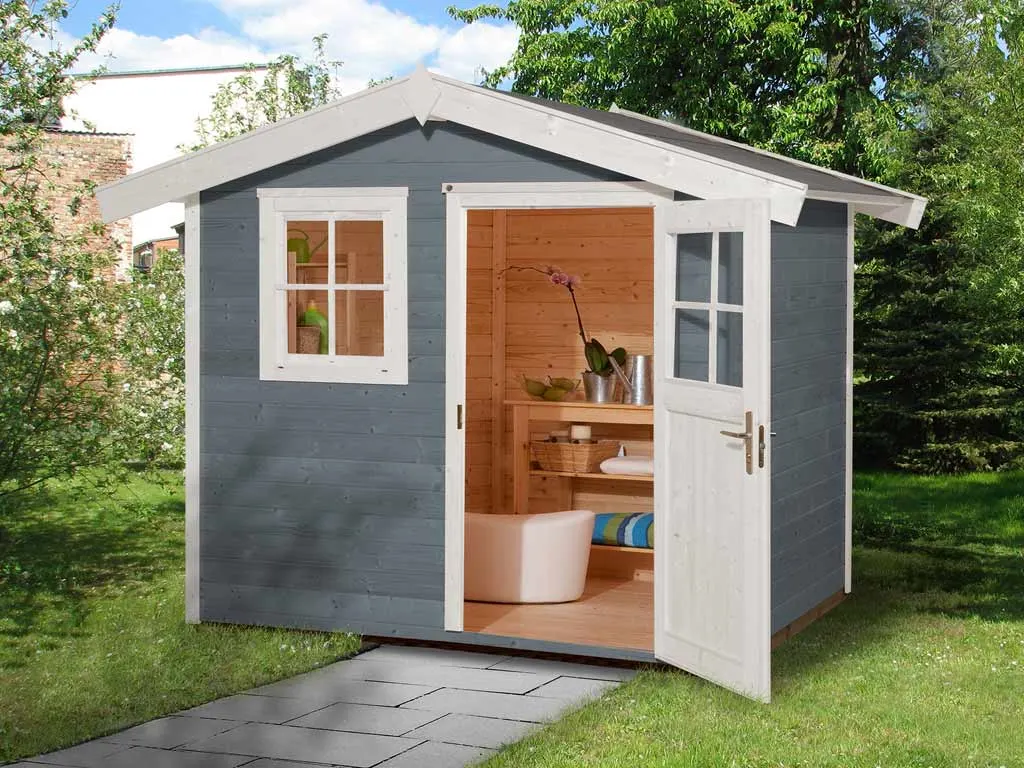 Setze ein farbiges Highlight in Deinem Garten. Dieses Gartenhaus überzeugt nicht nur durch seine Optik, der Holzschutzlack/-lasur in Grau schützt obendrein vor Schädlingen und Witterungseinflüssen und macht das Holz langlebiger und robuster. So ist auch nach längerer Zeit kein weiteres Streichen nötig.