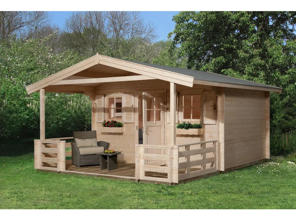 Die Wandstärke von 45 mm sorgt für gute Stabilität und Langlebigkeit. Dank der Bohlenstärke ist das Gartenhaus im Winter frostsicher, und im Sommer hat es gute wärmeisolierende Eigenschaften, was es zu einem perfekten Übernachtungsort für Gäste macht. Auch Pflanzen können in diesem Gartenhaus problemlos überwintern.