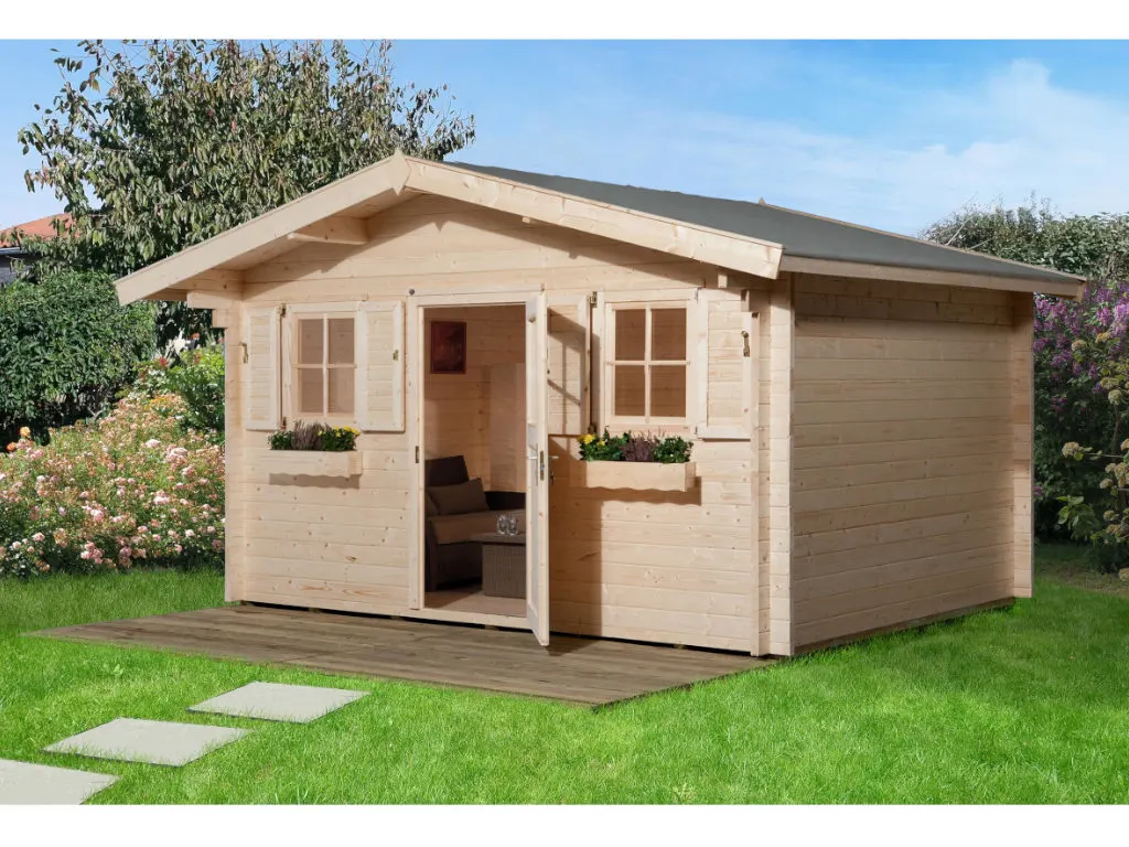 Die Wandstärke von 45 mm sorgt für gute Stabilität und Langlebigkeit. Dank der Bohlenstärke ist das Gartenhaus im Winter frostsicher, und im Sommer hat es gute wärmeisolierende Eigenschaften, was es zu einem perfekten Übernachtungsort für Gäste macht. Auch Pflanzen können in diesem Gartenhaus problemlos überwintern.