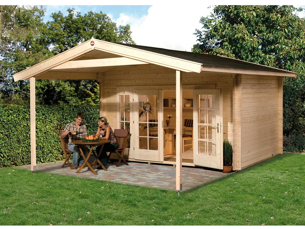 Als der Klassiker unter den Gartenhäusern verfügt ein Blockbohlenhaus über eine sehr robuste Bauweise, gepaart mit einer besonderen, natürlichen Ästhetik. Dabei orientiert sich die Bohlenbauweise an der traditionellen Blockhütte. Die Wände setzen sich aus vorgefertigten Holzbohlen zusammen, die dank einer Nut- und Feder-Verbindung ohne größere Anstrengungen aufeinander gesteckt werden können. Damit ist ein einfacher und schneller Auf- und Abbau garantiert. An der Kopfseite des Gartenhauses sorgt die charakteristische Verkämmung (spezielle Einkerbungen im Holz) nicht nur für eine schöne Optik, sondern hält das ganze Konstrukt auch zusammen und macht es absolut wind- und wetterfest.