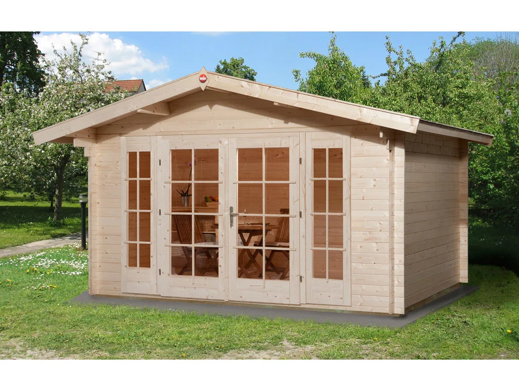 Die Grundfläche des Gartenhauses beträgt 11,4 m² mit einem Sockelmaß von 380 x 300 cm (B x T). Eine optimale Raumnutzung wird dank einer Firsthöhe von 262 cm gewährt.