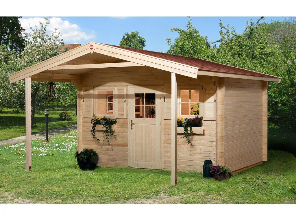Als der Klassiker unter den Gartenhäusern verfügt ein Blockbohlenhaus über eine sehr robuste Bauweise, gepaart mit einer besonderen, natürlichen Ästhetik. Dabei orientiert sich die Bohlenbauweise an der traditionellen Blockhütte. Die Wände setzen sich aus vorgefertigten Holzbohlen zusammen, die dank einer Nut- und Feder-Verbindung ohne größere Anstrengungen aufeinander gesteckt werden können. Damit ist ein einfacher und schneller Auf- und Abbau garantiert. An der Kopfseite des Gartenhauses sorgt die charakteristische Verkämmung (spezielle Einkerbungen im Holz) nicht nur für eine schöne Optik, sondern hält das ganze Konstrukt auch zusammen und macht es absolut wind- und wetterfest.