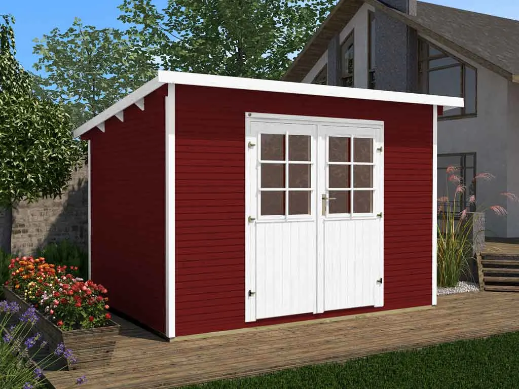 Setze ein farbiges Highlight in Deinem Garten. Dieses Gartenhaus überzeugt nicht nur durch seine Optik, der Holzschutzlack/-lasur in Schwedenrot schützt obendrein vor Schädlingen und Witterungseinflüssen und macht das Holz langlebiger und robuster. So ist auch nach längerer Zeit kein weiteres Streichen nötig.