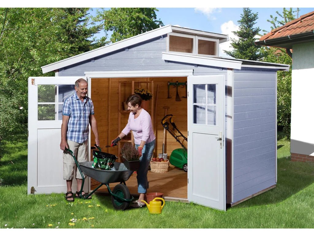 Setze ein farbiges Highlight in Deinem Garten. Dieses Gartenhaus überzeugt nicht nur durch seine Optik, der Holzschutzlack/-lasur in Grau schützt obendrein vor Schädlingen und Witterungseinflüssen und macht das Holz langlebiger und robuster. So ist auch nach längerer Zeit kein weiteres Streichen nötig.