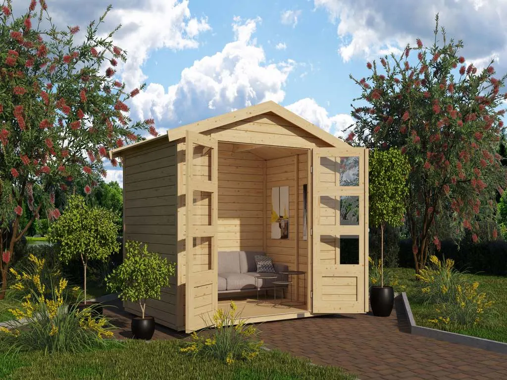 Das naturbelassene Holz sorgt für ein natürliches und zeitloses Aussehen. Außerdem ermöglicht dir das unbehandelte Holz, das Äußere des Gartenhauses ganz nach deinen eigenen Wünschen zu gestalten.