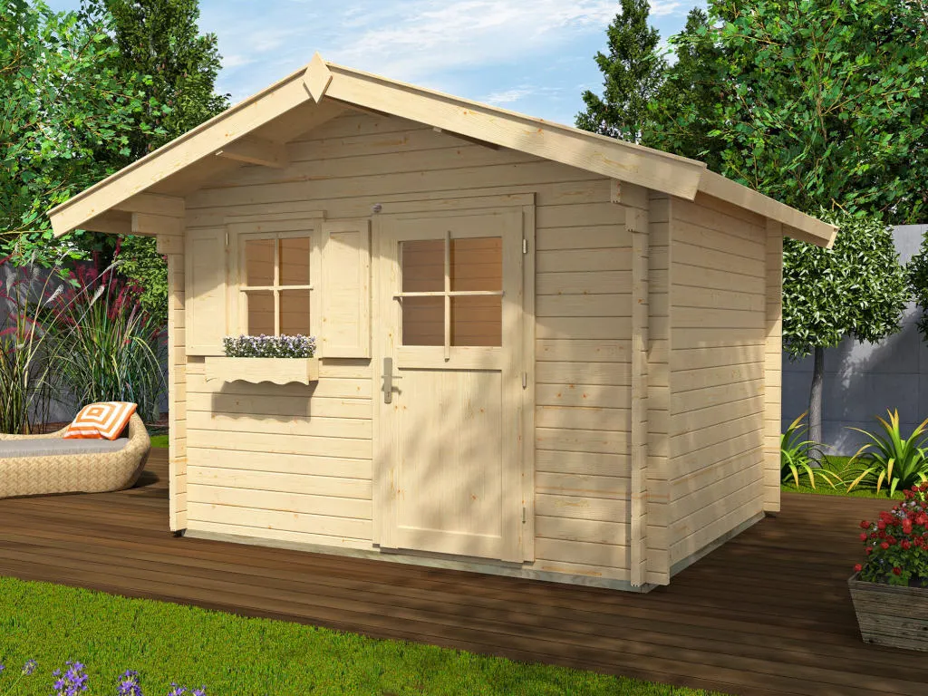 Als der Klassiker unter den Gartenhäusern verfügt ein Blockbohlenhaus über eine sehr robuste Bauweise, gepaart mit einer besonderen, natürlichen Ästhetik. Dabei orientiert sich die Bohlenbauweise an der traditionellen Blockhütte. Die Wände setzen sich aus vorgefertigten Holzbohlen zusammen, die dank einer Nut- und Feder-Verbindung ohne größere Anstrengungen aufeinander gesteckt werden können. Damit ist ein einfacher und schneller Auf- und Abbau garantiert. An der Kopfseite des Gartenhauses sorgt die charakteristische Verkämmung (spezielle Einkerbungen im Holz) nicht nur für eine schöne Optik, sondern hält das ganze Konstrukt auch zusammen und macht es absolut wind- und wetterfest.