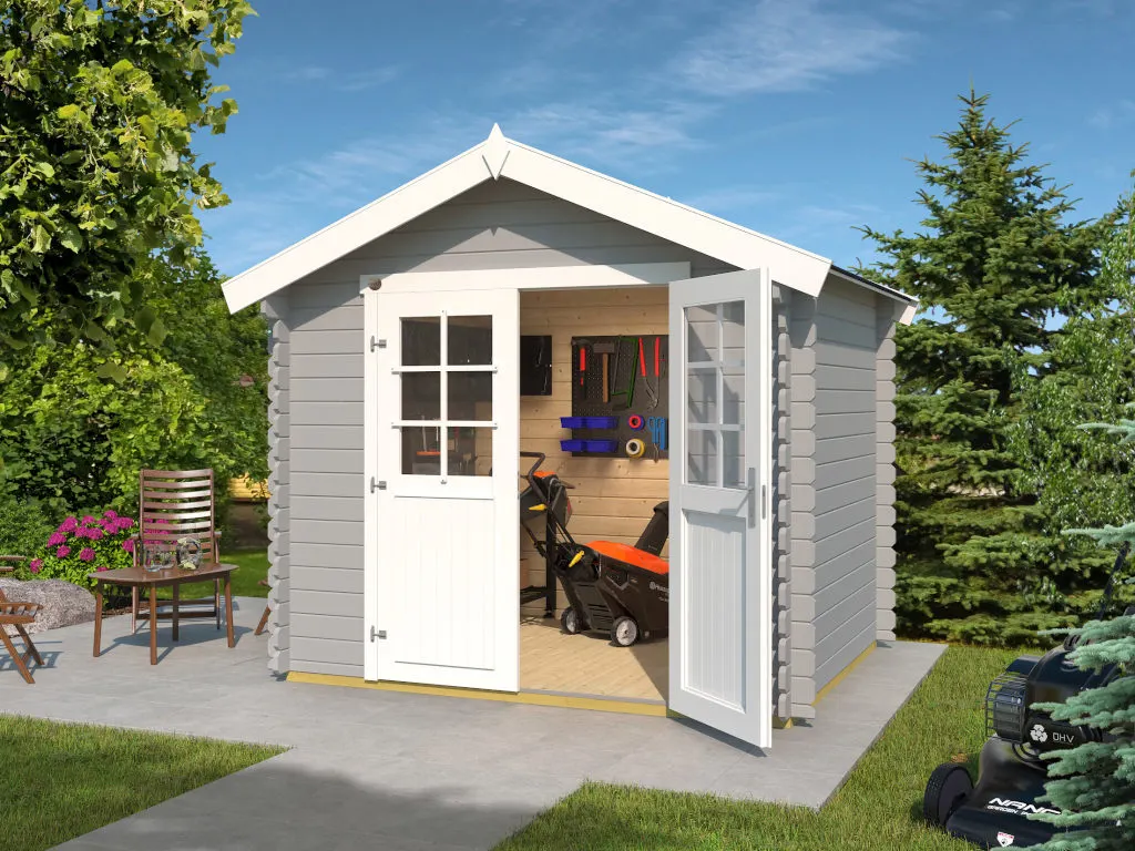 Gartenhaus Blockbohlenhaus 209 Gr. 1,5 28 mm hellgrau