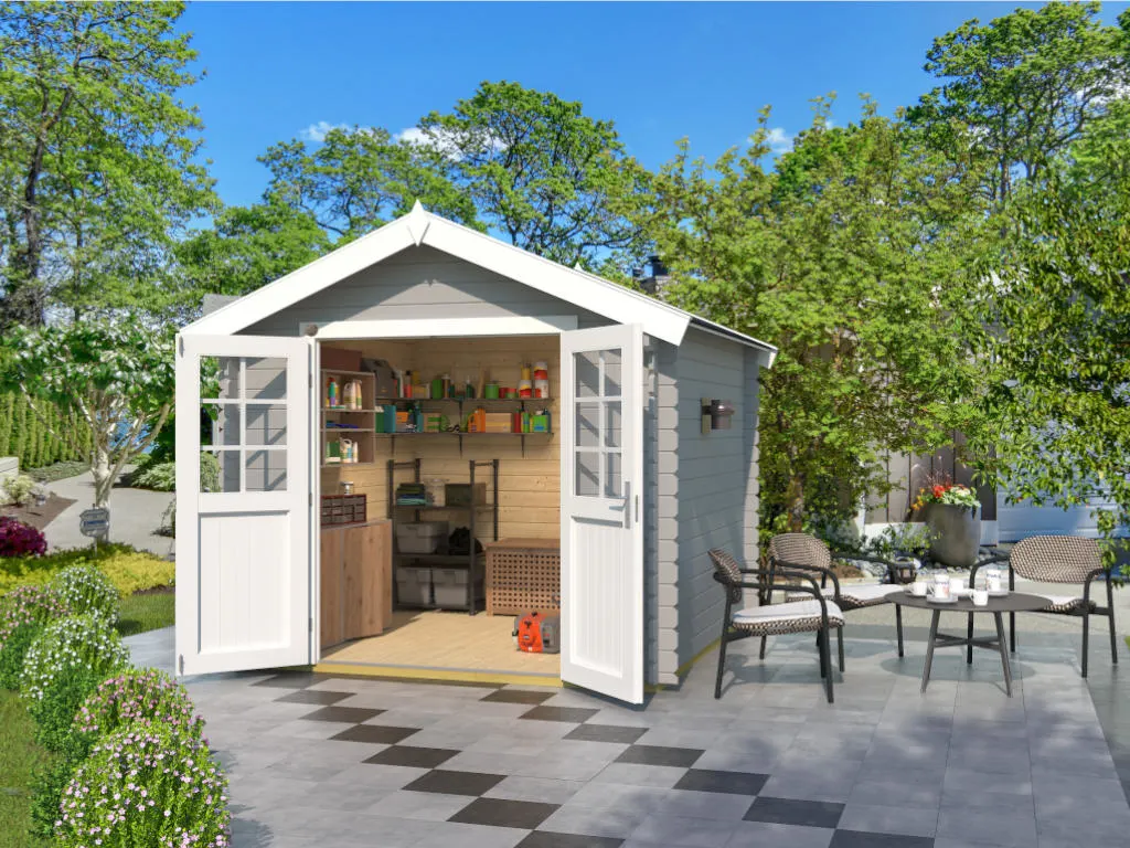 Dieses klassische Gartenhaus überzeugt mit seiner Praktikabilität. Dank seines traditionsbewussten, unaufdringlichen Designs fügt es sich in jede Umgebung perfekt ein und strahlt dabei Gemütlichkeit und Heimeligkeit aus. Ob als Unterstellplatz für Gartengeräte, Grill, Fahrrad oder als Hobbyraum - das klassische Gartenhaus bietet Raum für Deine individuellen Bedürfnisse.