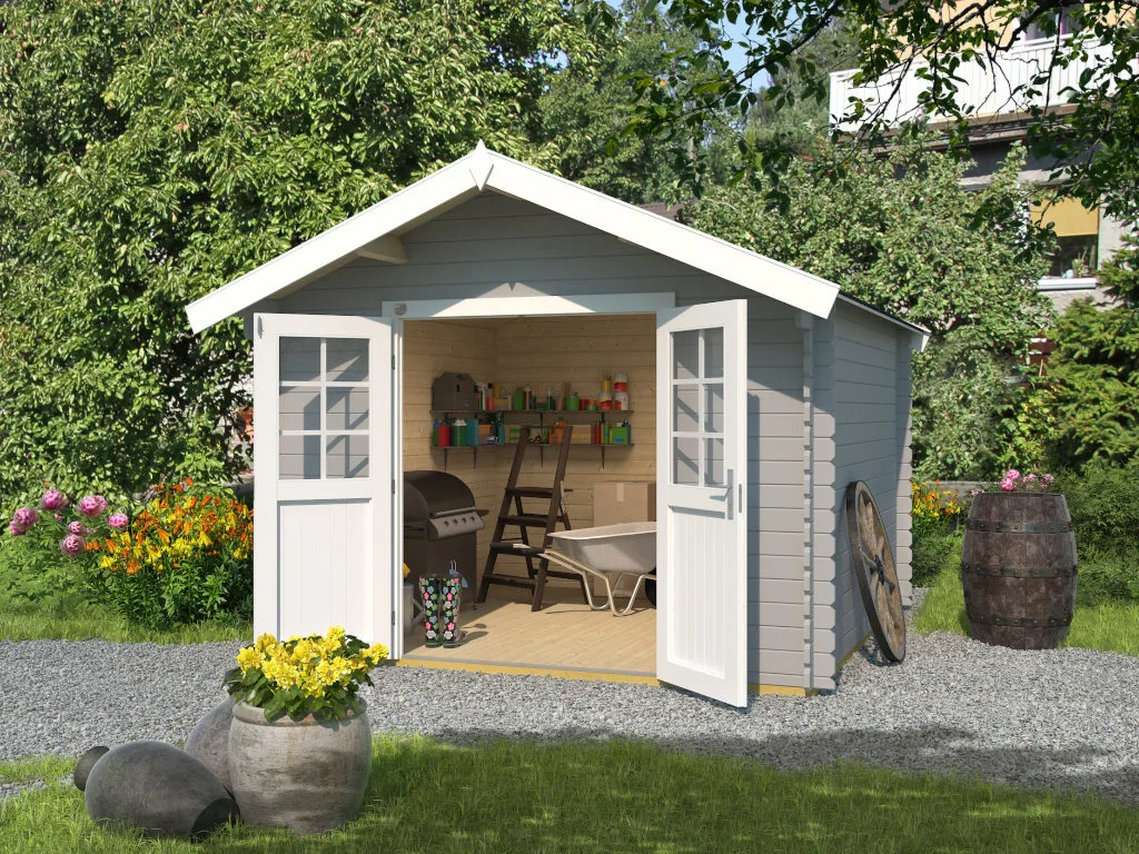 Gartenhaus Blockbohlenhaus 209 Gr. 3 28 mm hellgrau