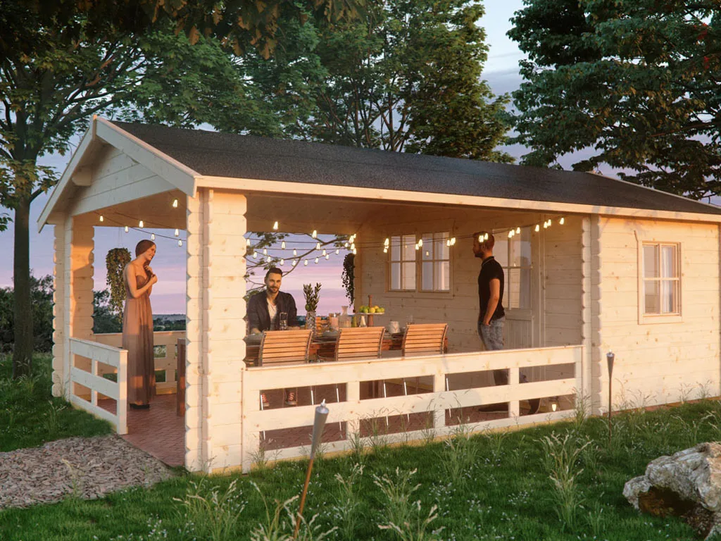 Als der Klassiker unter den Gartenhäusern verfügt ein Blockbohlenhaus über eine sehr robuste Bauweise, gepaart mit einer besonderen, natürlichen Ästhetik. Dabei orientiert sich die Bohlenbauweise an der traditionellen Blockhütte. Die Wände setzen sich aus vorgefertigten Holzbohlen zusammen, die dank einer Nut- und Feder-Verbindung ohne größere Anstrengungen aufeinander gesteckt werden können. Damit ist ein einfacher und schneller Auf- und Abbau garantiert. An der Kopfseite des Gartenhauses sorgt die charakteristische Verkämmung (spezielle Einkerbungen im Holz) nicht nur für eine schöne Optik, sondern hält das ganze Konstrukt auch zusammen und macht es absolut wind- und wetterfest.