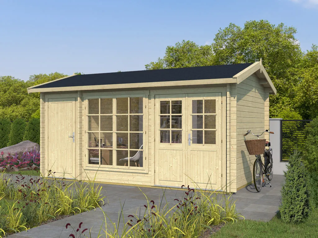 Die Wandstärke von 40 mm sorgt für gute Stabilität und Langlebigkeit. Dank der Bohlenstärke ist das Gartenhaus im Winter frostsicher und im Sommer hat es gute wärmeisolierende Eigenschaften, was es zu einem perfekten Übernachtungsort für Gäste macht. Auch Pflanzen können in diesem Gartenhaus problemlos überwintern.