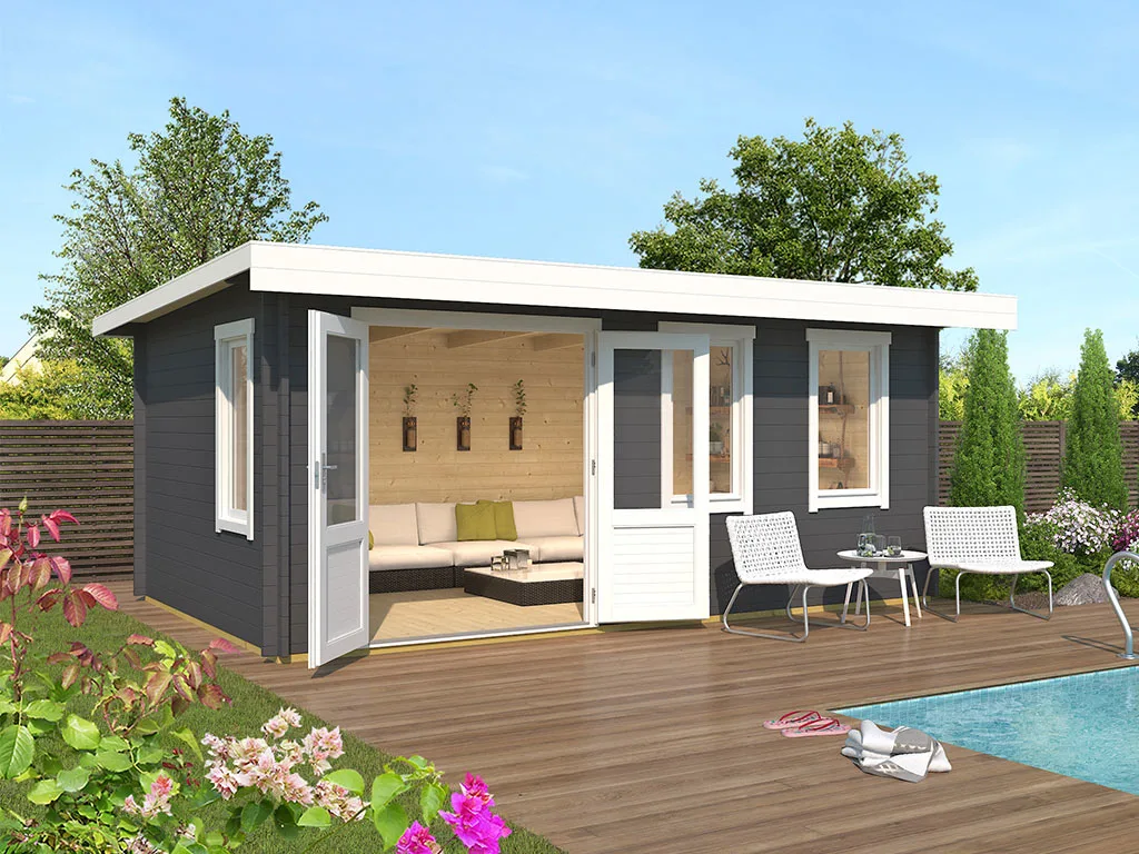 Die Wandstärke von 40 mm sorgt für gute Stabilität und Langlebigkeit. Dank der Bohlenstärke ist das Gartenhaus im Winter frostsicher, und im Sommer hat es gute wärmeisolierende Eigenschaften, was es zu einem perfekten Übernachtungsort für Gäste macht. Auch Pflanzen können in diesem Gartenhaus problemlos überwintern.