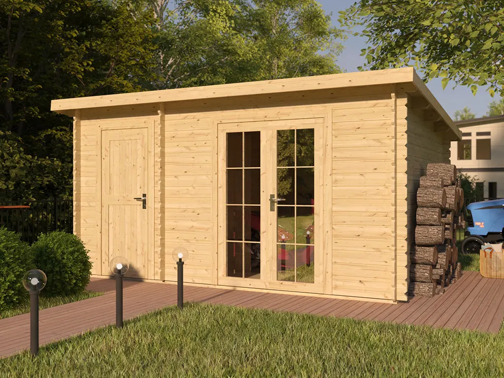 Als einer der Klassiker unter den Gartenhäusern zeichnet sich ein Blockbohlenhaus durch seine sehr robuste Bauweise, gepaart mit einer besonderen, natürlichen Ästhetik, aus. Dabei orientiert sich diese Bauweise an der traditionellen Blockhütte. Mit seinem traditionellen, unaufdringlichen Design fügt es sich so harmonisch in jede Umgebung ein.