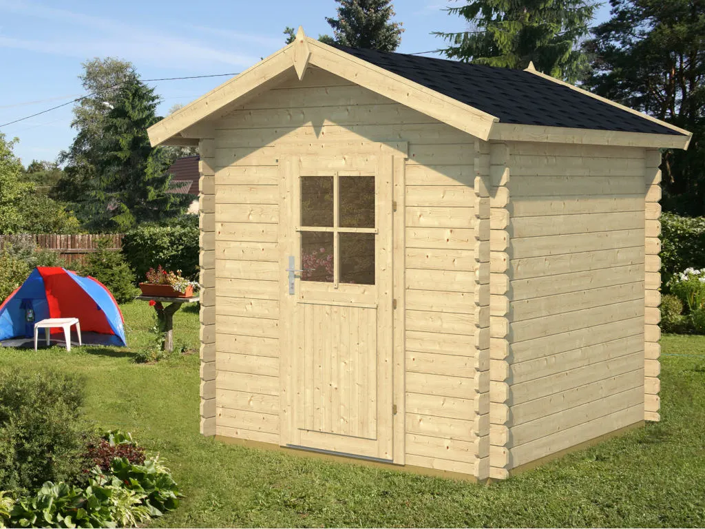 Als der Klassiker unter den Gartenhäusern verfügt ein Blockbohlenhaus über eine sehr robuste Bauweise, gepaart mit einer besonderen, natürlichen Ästhetik. Dabei orientiert sich die Bohlenbauweise an der traditionellen Blockhütte. Die Wände setzen sich aus vorgefertigten Holzbohlen zusammen, die dank einer Nut- und Feder-Verbindung ohne größere Anstrengungen aufeinander gesteckt werden können. Damit ist ein einfacher und schneller Auf- und Abbau garantiert. An der Kopfseite des Gartenhauses sorgt die charakteristische Verkämmung (spezielle Einkerbungen im Holz) nicht nur für eine schöne Optik, sondern hält das ganze Konstrukt auch zusammen und macht es absolut wind- und wetterfest.