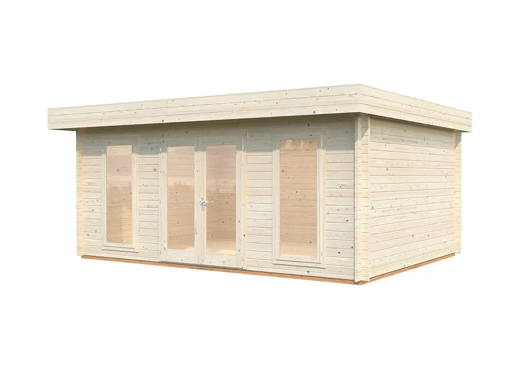 Die Wandstärke von 44 mm sorgt für gute Stabilität und Langlebigkeit. Dank der Bohlenstärke ist das Gartenhaus im Winter frostsicher, und im Sommer hat es gute wärmeisolierende Eigenschaften, was es zu einem perfekten Übernachtungsort für Gäste macht. Auch Pflanzen können in diesem Gartenhaus problemlos überwintern.