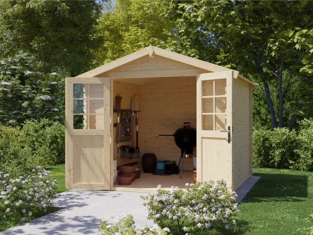 Das naturbelassene Holz sorgt für ein natürliches und zeitloses Aussehen. Außerdem ermöglicht Dir das unbehandelte Holz, das Äußere des Gartenhauses ganz nach Deinen eigenen Wünschen zu gestalten.