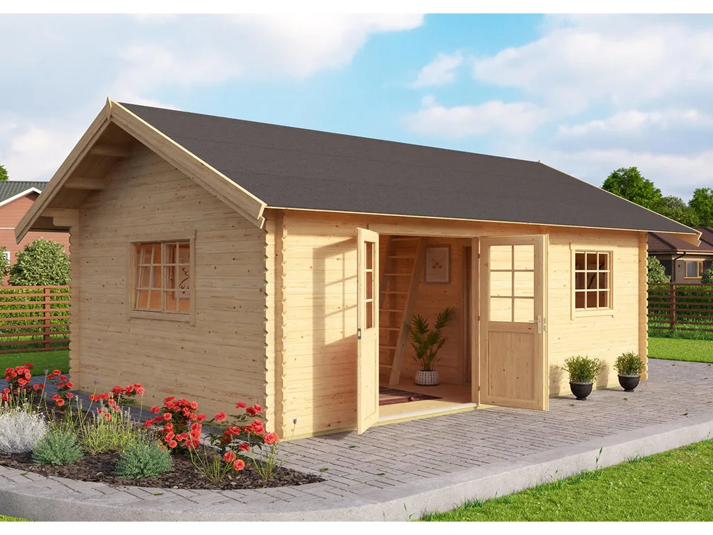 Lasita Gartenhaus Caroline Blockbohlenbauweise Satteldach