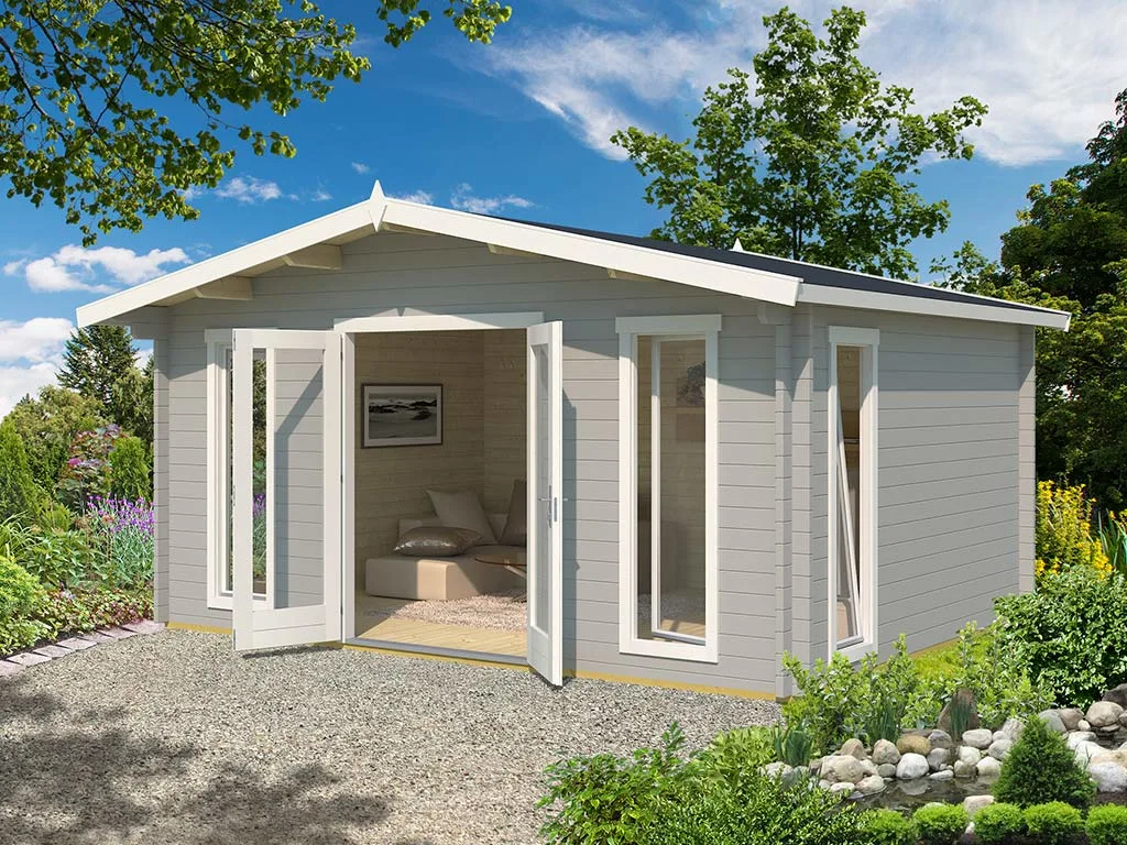Die Wandstärke von 44 mm sorgt für gute Stabilität und Langlebigkeit. Dank der Bohlenstärke ist das Gartenhaus im Winter frostsicher, und im Sommer hat es gute wärmeisolierende Eigenschaften, was es zu einem perfekten Übernachtungsort für Gäste macht. Auch Pflanzen können in diesem Gartenhaus problemlos überwintern.