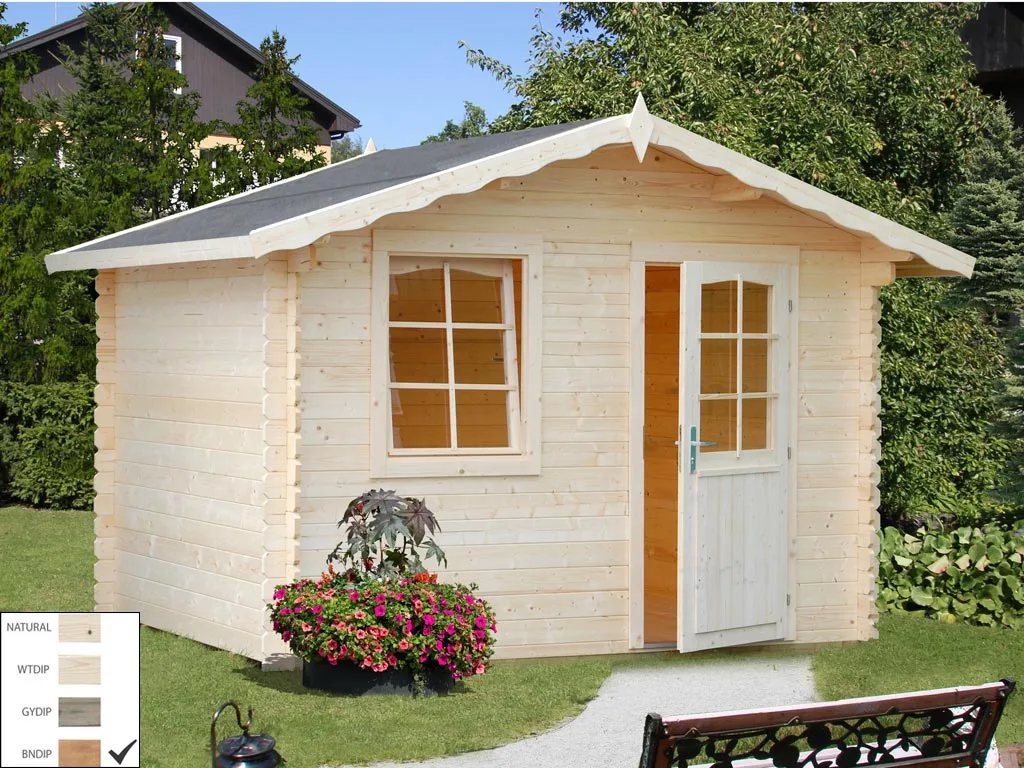 Als der Klassiker unter den Gartenhäusern verfügt ein Blockbohlenhaus über eine sehr robuste Bauweise, gepaart mit einer besonderen, natürlichen Ästhetik. Dabei orientiert sich die Bohlenbauweise an der traditionellen Blockhütte. Die Wände setzen sich aus vorgefertigten Holzbohlen zusammen, die dank einer Nut- und Feder-Verbindung ohne größere Anstrengungen aufeinander gesteckt werden können. Damit ist ein einfacher und schneller Auf- und Abbau garantiert. An der Kopfseite des Gartenhauses sorgt die charakteristische Verkämmung (spezielle Einkerbungen im Holz) nicht nur für eine schöne Optik, sondern hält das ganze Konstrukt auch zusammen und macht es absolut wind- und wetterfest.