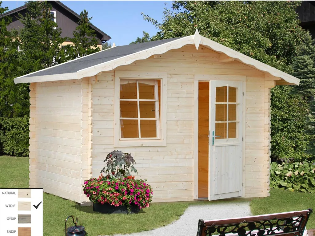 Das Holz ist tauchimprägniert und besitzt eine hohe Beständigkeit. Auch gewährt diese Imprägnierung Schutz vor Feuchtigkeit und UV-Strahlung sowie Befall durch Schädlinge. So wird die Langlebigkeit des Holzes deutlich erhöht und die Freude am Gartenhaus verlängert.