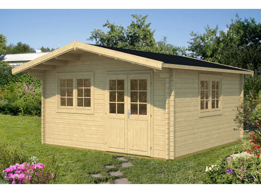 | Bauweise Gartenhäuser aus Holz sind in drei verschiedenen Bauweisen erhältlich: Blockbohlenbauweise, Systembauweise, Elementbauweise. | Blockbohlenbauweise |