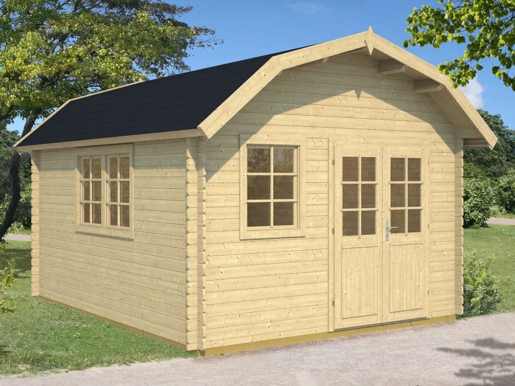 | Bauweise Gartenhäuser aus Holz sind in drei verschiedenen Bauweisen erhältlich: Blockbohlenbauweise, Systembauweise, Elementbauweise. | Blockbohlenbauweise |