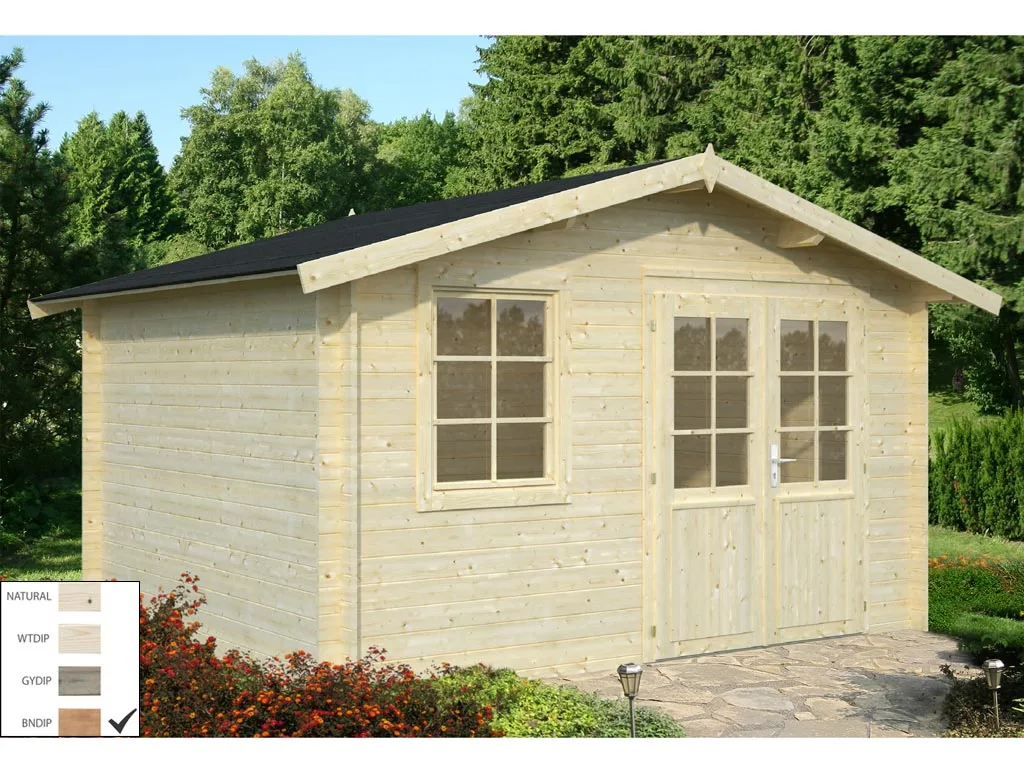 Das Holz ist tauchimprägniert und besitzt eine hohe Beständigkeit. Auch gewährt diese Imprägnierung Schutz vor Feuchtigkeit und UV-Strahlung sowie Befall durch Schädlinge. So wird die Langlebigkeit des Holzes deutlich erhöht und die Freude am Gartenhaus verlängert.