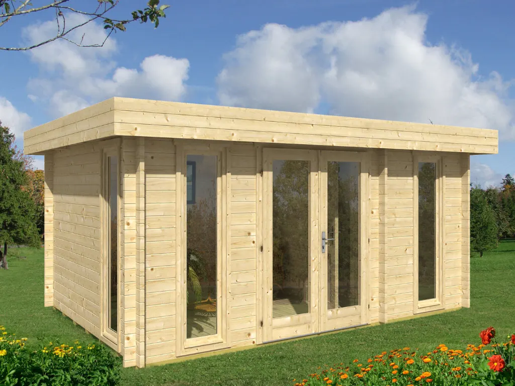 Als der Klassiker unter den Gartenhäusern verfügt ein Blockbohlenhaus über eine sehr robuste Bauweise, gepaart mit einer besonderen, natürlichen Ästhetik. Dabei orientiert sich die Bohlenbauweise an der traditionellen Blockhütte. Die Wände setzen sich aus vorgefertigten Holzbohlen zusammen, die dank einer Nut- und Feder-Verbindung ohne größere Anstrengungen aufeinander gesteckt werden können. Damit ist ein einfacher und schneller Auf- und Abbau garantiert. An der Kopfseite des Gartenhauses sorgt die charakteristische Verkämmung (spezielle Einkerbungen im Holz) nicht nur für eine schöne Optik, sondern hält das ganze Konstrukt auch zusammen und macht es absolut wind- und wetterfest.