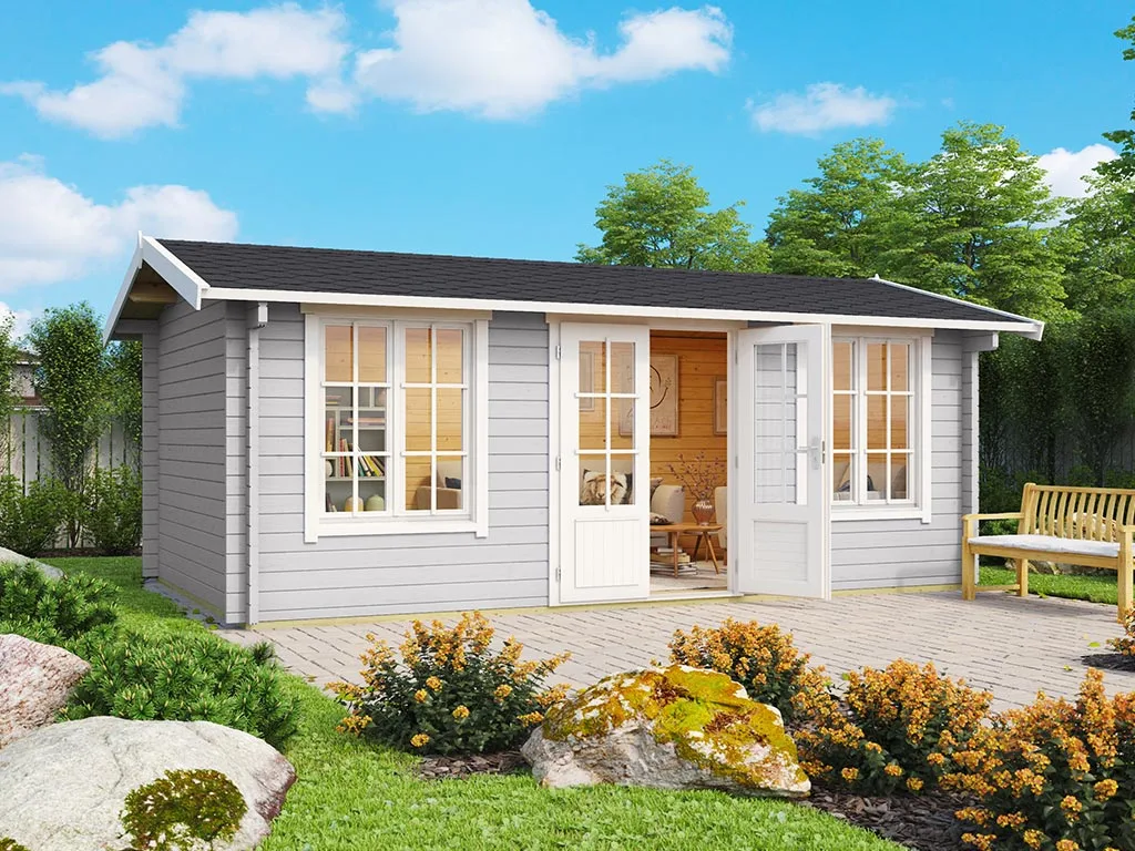 Als der Klassiker unter den Gartenhäusern verfügt ein Blockbohlenhaus über eine sehr robuste Bauweise, gepaart mit einer besonderen, natürlichen Ästhetik. Dabei orientiert sich die Bohlenbauweise an der traditionellen Blockhütte. Die Wände setzen sich aus vorgefertigten Holzbohlen zusammen, die dank einer Nut- und Feder-Verbindung ohne größere Anstrengungen aufeinander gesteckt werden können. Damit ist ein einfacher und schneller Auf- und Abbau garantiert. An der Kopfseite des Gartenhauses sorgt die charakteristische Verkämmung (spezielle Einkerbungen im Holz) nicht nur für eine schöne Optik, sondern hält das ganze Konstrukt auch zusammen und macht es absolut wind- und wetterfest.