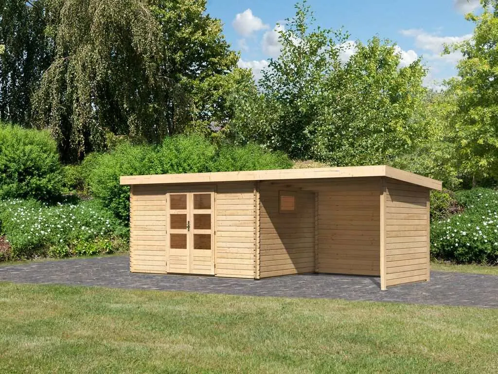 KARIBU Gartenhaus Trittau Blockbohlenbauweise Pultdach