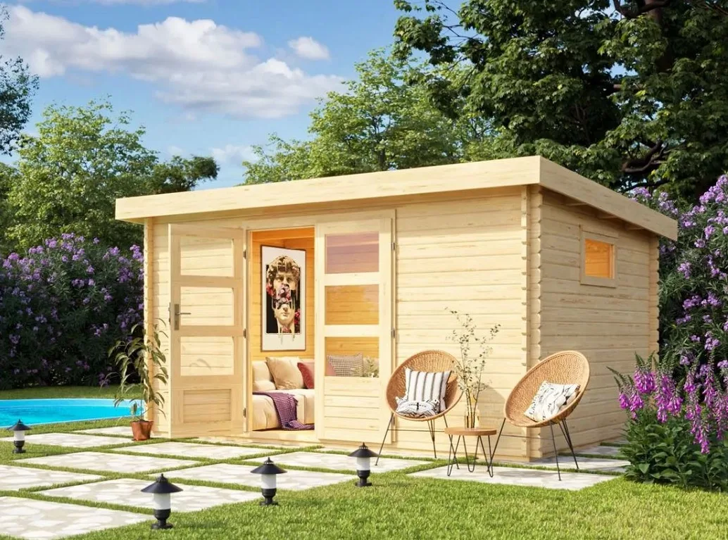 Als der Klassiker unter den Gartenhäusern verfügt ein Blockbohlenhaus über eine sehr robuste Bauweise, gepaart mit einer besonderen, natürlichen Ästhetik. Dabei orientiert sich die Bohlenbauweise an der traditionellen Blockhütte. Die Wände setzen sich aus vorgefertigten Holzbohlen zusammen, die dank einer Nut- und Feder-Verbindung ohne größere Anstrengungen aufeinander gesteckt werden können. Damit ist ein einfacher und schneller Auf- und Abbau garantiert. An der Kopfseite des Gartenhauses sorgt die charakteristische Verkämmung (spezielle Einkerbungen im Holz) nicht nur für eine schöne Optik, sondern hält das ganze Konstrukt auch zusammen und macht es absolut wind- und wetterfest.
