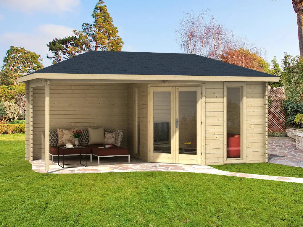 Als der Klassiker unter den Gartenhäusern verfügt ein Blockbohlenhaus über eine sehr robuste Bauweise, gepaart mit einer besonderen, natürlichen Ästhetik. Dabei orientiert sich die Bohlenbauweise an der traditionellen Blockhütte. Die Wände setzen sich aus vorgefertigten Holzbohlen zusammen, die dank einer Nut- und Feder-Verbindung ohne größere Anstrengungen aufeinander gesteckt werden können. Damit ist ein einfacher und schneller Auf- und Abbau garantiert. An der Kopfseite des Gartenhauses sorgt die charakteristische Verkämmung (spezielle Einkerbungen im Holz) nicht nur für eine schöne Optik, sondern hält das ganze Konstrukt auch zusammen und macht es absolut wind- und wetterfest.