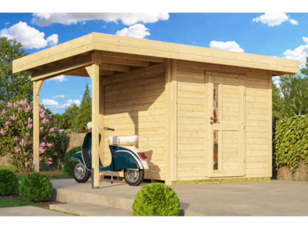 Die Grundfläche des Gartenhauses beträgt 11,2 m² mit einem Sockelmaß von B x T: 382 x 241 cm (B x T). Eine optimale Raumnutzung wird dank einer Firsthöhe von 226 cm gewährt.