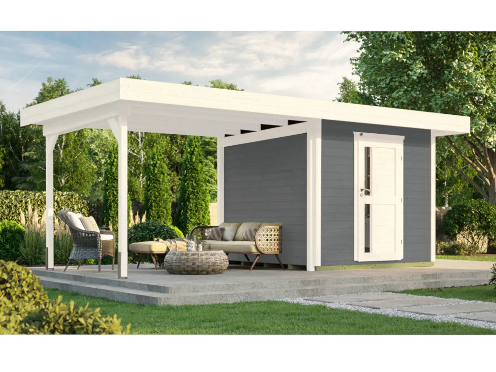 Setze ein farbiges Highlight in Deinem Garten. Dieses Gartenhaus überzeugt nicht nur durch seine Optik, der Holzschutzlack/-lasur in Grau schützt obendrein vor Schädlingen und Witterungseinflüssen und macht das Holz langlebiger und robuster. So ist auch nach längerer Zeit kein weiteres Streichen nötig.