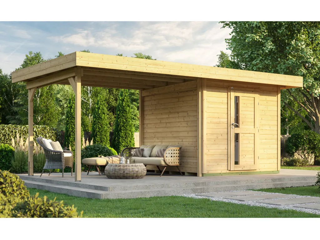 Die Grundfläche des Gartenhauses beträgt 15,42 m² mit einem Sockelmaß von B x T: 530 x 241 cm (B x T). Eine optimale Raumnutzung wird dank einer Firsthöhe von 226 cm gewährt.