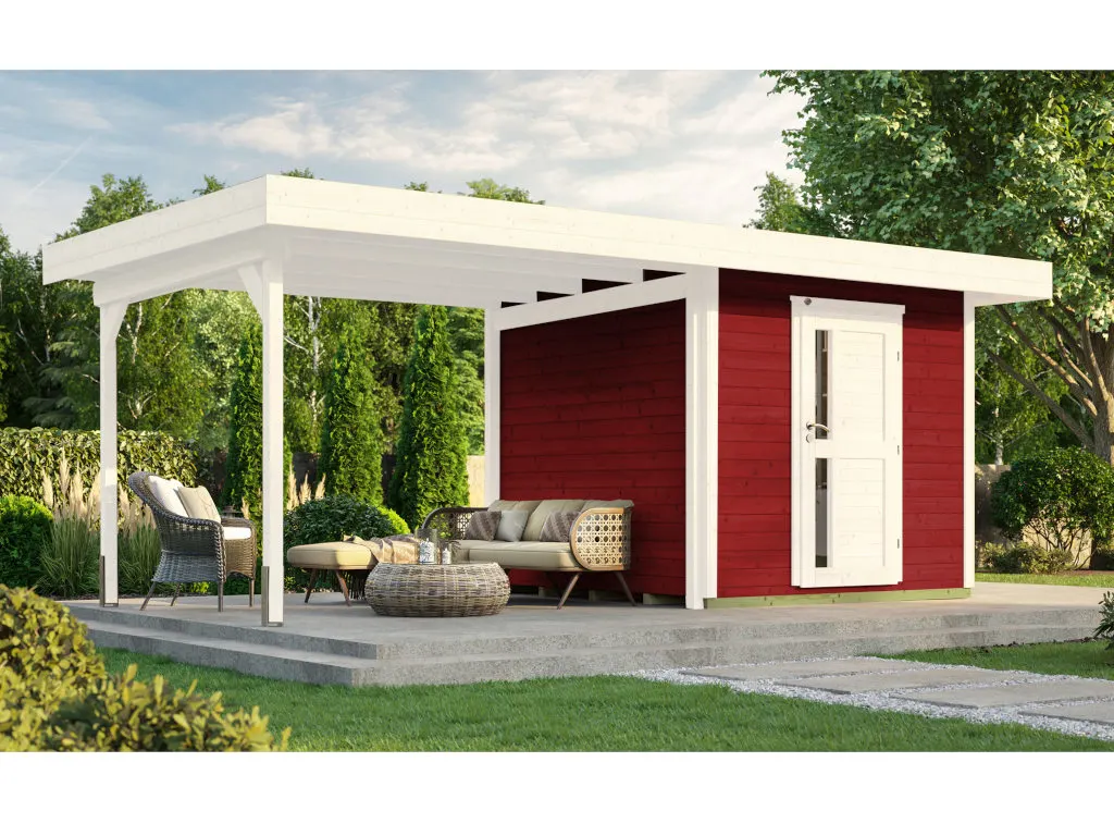 Setze ein farbiges Highlight in Deinem Garten. Dieses Gartenhaus überzeugt nicht nur durch seine Optik, der Holzschutzlack/-lasur in Rot schützt obendrein vor Schädlingen und Witterungseinflüssen und macht das Holz langlebiger und robuster. So ist auch nach längerer Zeit kein weiteres Streichen nötig.