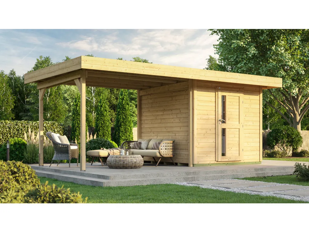 Gartenhaus Designhaus 172 B Gr. 2 28 mm natur inkl. Anbau 2,95 m