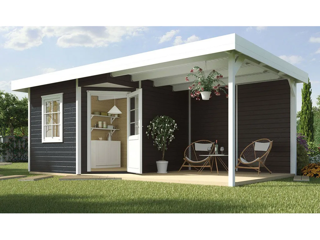 Das Gartenhaus mit Anbaudach und Rückwand ist sehr vielseitig. Der durch das Anbaudach geschaffene zusätzliche Stauraum eignet sich optimal als Lagerplatz für Gartenutensilien oder als Sitzbereich zum gemütlichen Verweilen. Dank Überdachung und integrierter Rückwand sind Geräte und Gartenmöbel optimal vor Wind und Wetter geschützt.