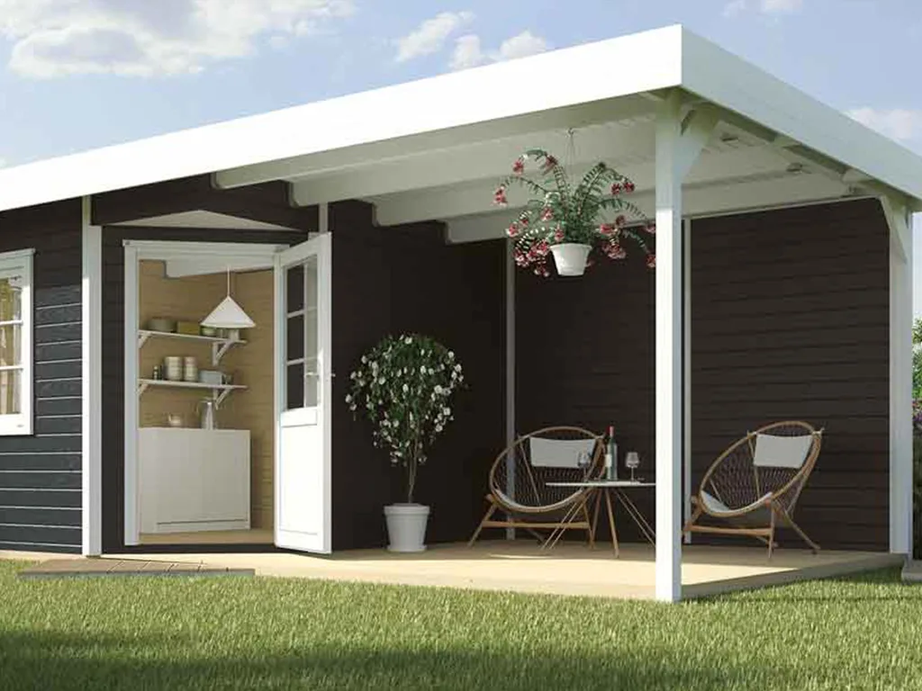 Das Gartenhaus mit Anbaudach und Rückwand ist sehr vielseitig. Der durch das Anbaudach geschaffene zusätzliche Stauraum eignet sich optimal als Lagerplatz für Gartenutensilien oder als Sitzbereich zum gemütlichen Verweilen. Dank Überdachung und integrierter Rückwand sind Geräte und Gartenmöbel optimal vor Wind und Wetter geschützt.