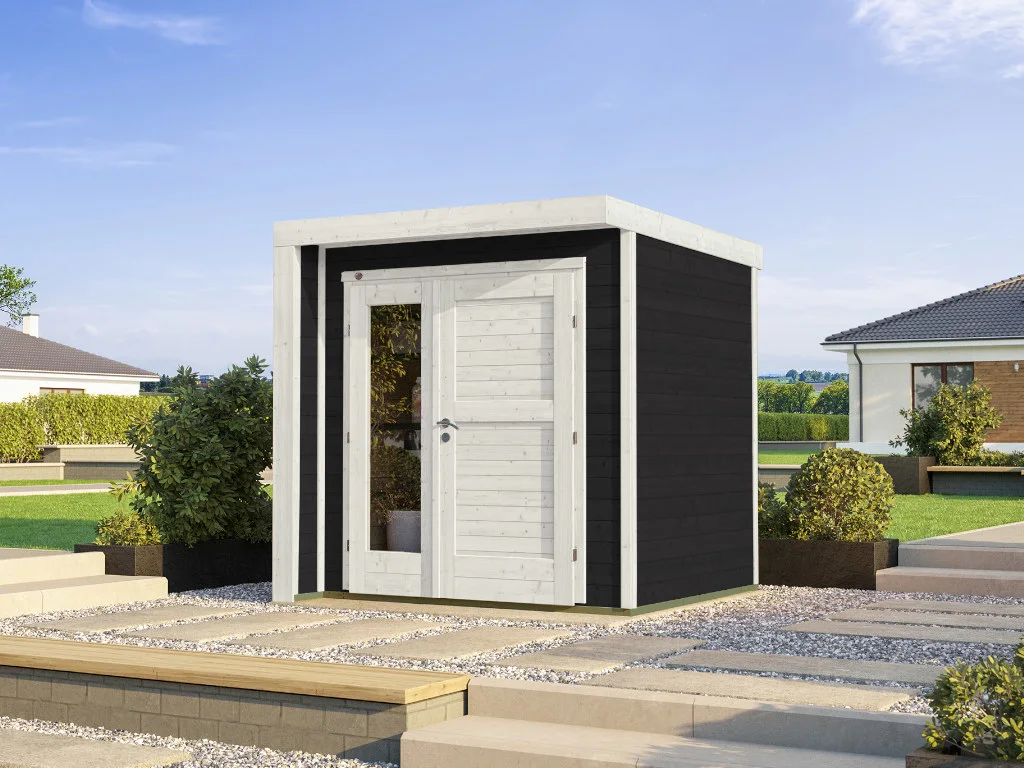 Die Grundfläche des Gartenhauses beträgt 4,28 m². Das Sockelmaß (Haus ohne Anbau) liegt bei 209 x 205 cm (B x T). Eine optimale Raumnutzung wird dank einer Firsthöhe von 218 cm gewährt.