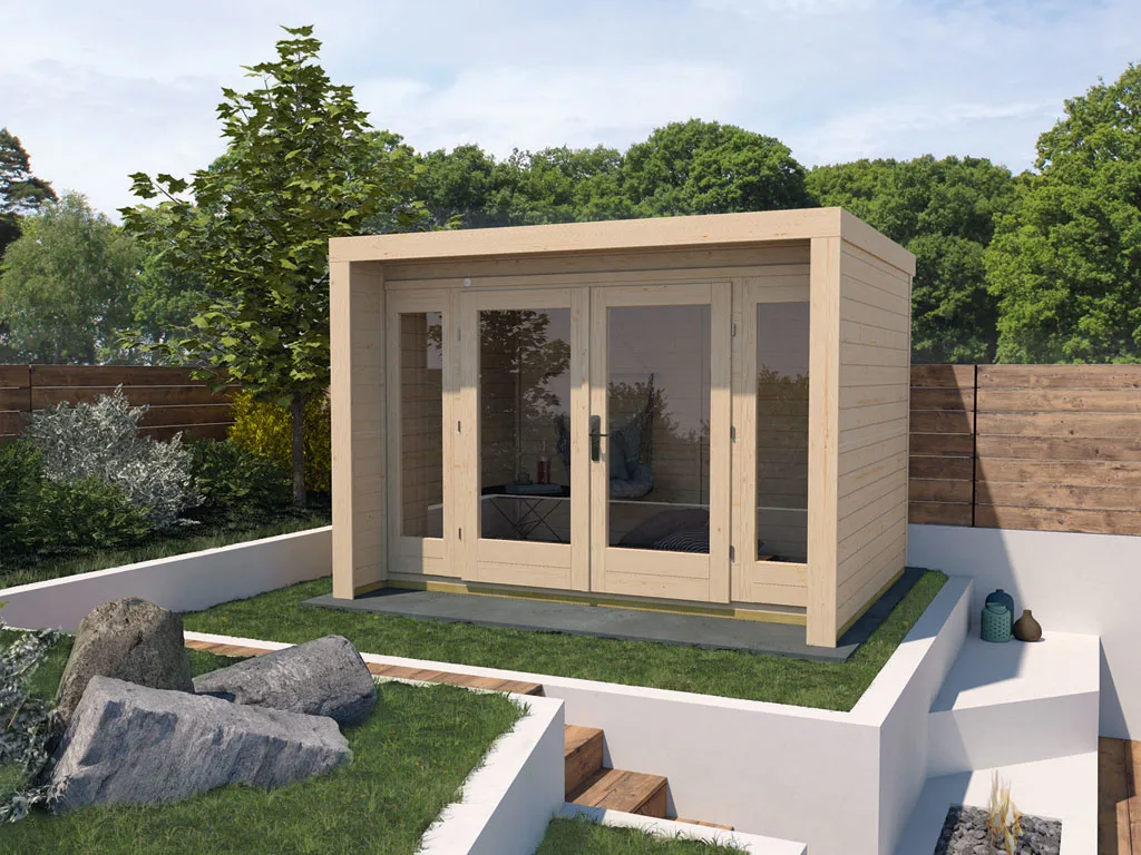 Das naturbelassene Holz sorgt für ein natürliches und zeitloses Aussehen. Außerdem ermöglicht Dir das unbehandelte Holz, das Äußere des Gartenhauses ganz nach Deinen eigenen Wünschen zu gestalten.
