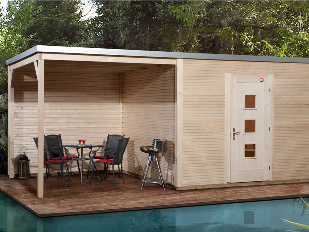 Das Gartenhaus mit Anbaudach und Rückwand ist sehr vielseitig. Der durch das Anbaudach geschaffene zusätzliche Stauraum eignet sich optimal als Lagerplatz für Gartenutensilien oder als Sitzbereich zum gemütlichen Verweilen. Dank Überdachung und integrierter Rückwand sind Geräte und Gartenmöbel optimal vor Wind und Wetter geschützt.